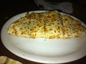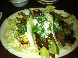 The Tacos – The tacos I ordered came out as expected, and with several lime wedges. The plate was well presented. The scallop taco contained cabbage, cilantro, avocado, and a chipotle cream sauce. We were not impressed by the taste of this taco, as again it was bland. The scallops were very rubbery and over cooked. Also, with three small scallops in a large taco, there was nothing in this thing. Now, this was a totally different story on the brisket. I thought this taco was nearly perfect. It was a little on the dry side, but overall very tasty and served perfectly. The brisket taco was served with onions, cotija cheese, and cilantro. This one was my favorite! You could almost taste a hint of the Dos Equis Beer. Fantastic. The third taco that I ordered was the Carnitas, and it was good, but yet again a little bland. This taco was suppose to be served with jack cheese, onions and cilantro, yet all I got on top was onions. See the picture to the far right. I guess one out of three tacos was good, the rest were just ok.